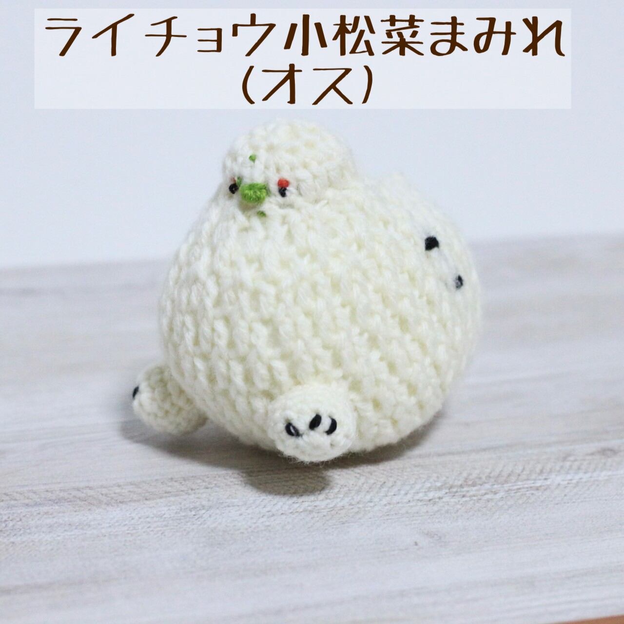こちらライチョウちゃんもちもちあみぐるみ(小松菜まみれ)になります。
