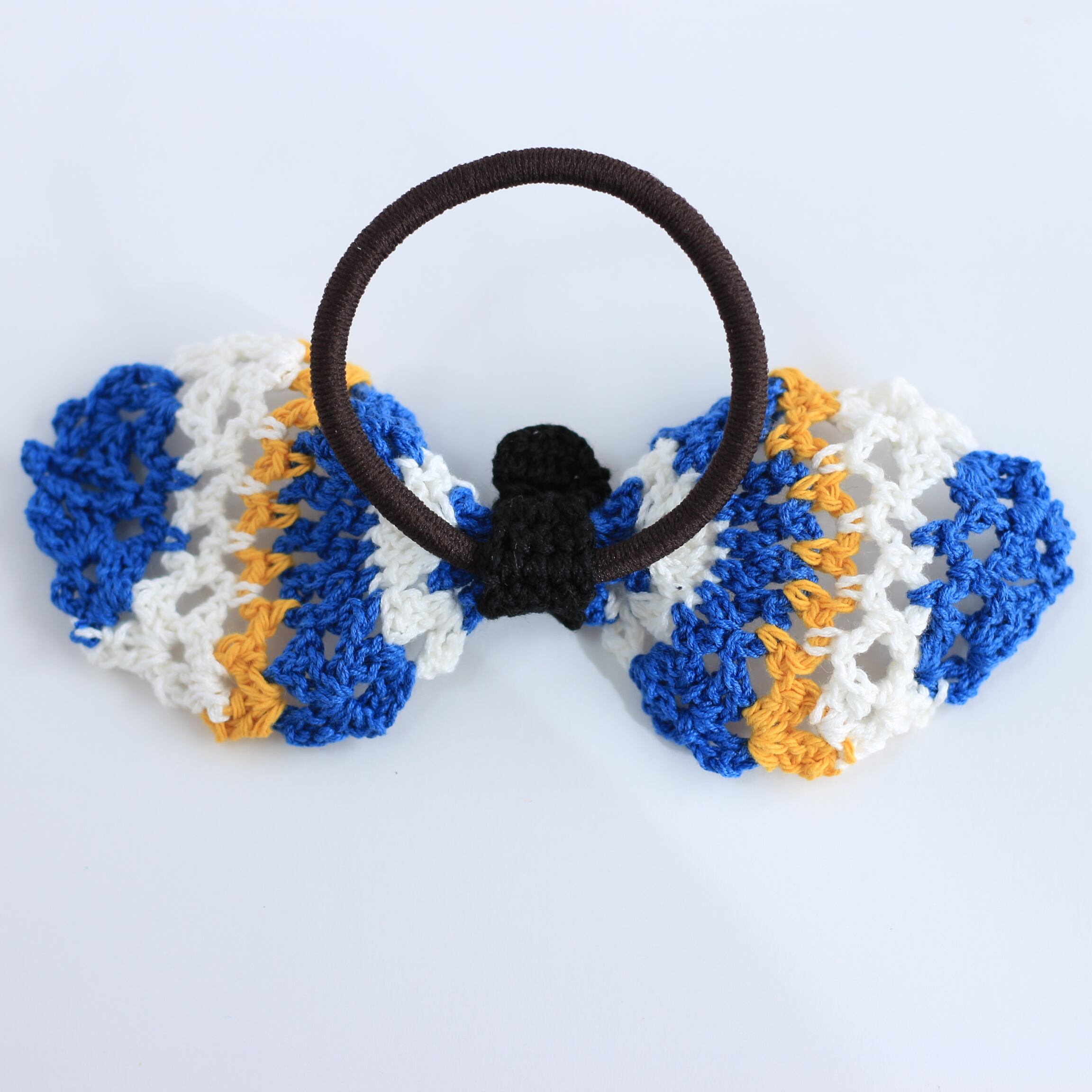 こちらルリビタキのレースリボンヘアゴムになります!コットン糸で丁寧に編まれたルリビタキイメージのレースが特徴で、どこか優雅な雰囲気を持つデザインです。可愛らしい文鳥の姿が、あなたのヘアスタイルを華やかに彩ります。リボンの柔らかな素材感と繊細なレース編みが、女性らしさを引き立ててくれるアイテムです。