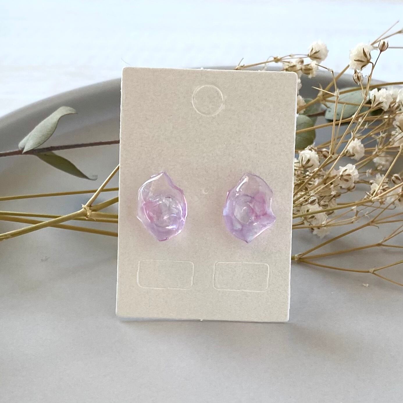 キラキラ輝く薄ピンクの宝石ピアス。レジンを使用して作られ、透明感のある表面が美しい輝きを放ちます。軽やかで華やかなデザインなので、普段使いからパーティーシーンまで幅広いスタイリングに合わせることができます。