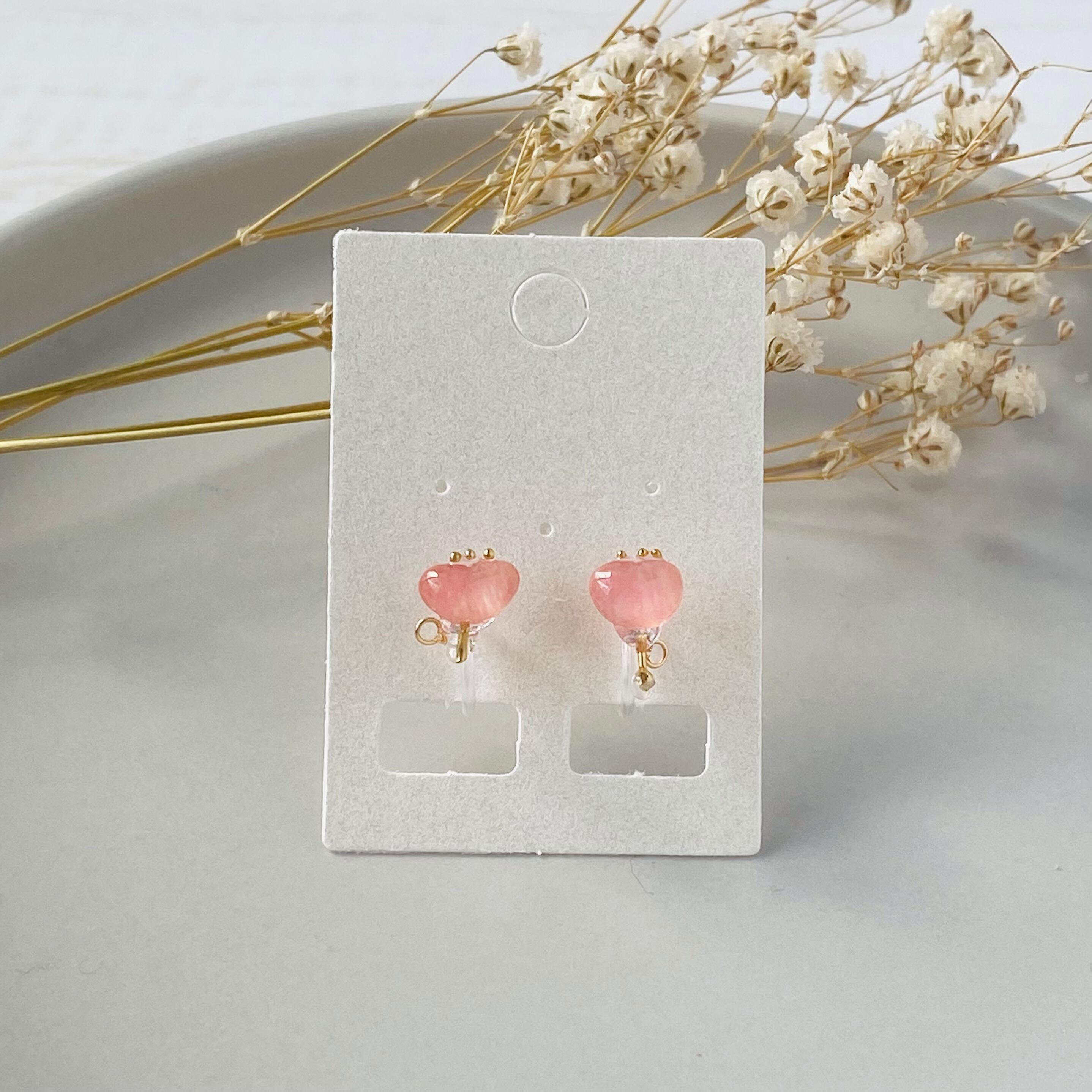 可愛らしいピンクのお花が耳元を彩る、ノンホールピアスのご紹介です。