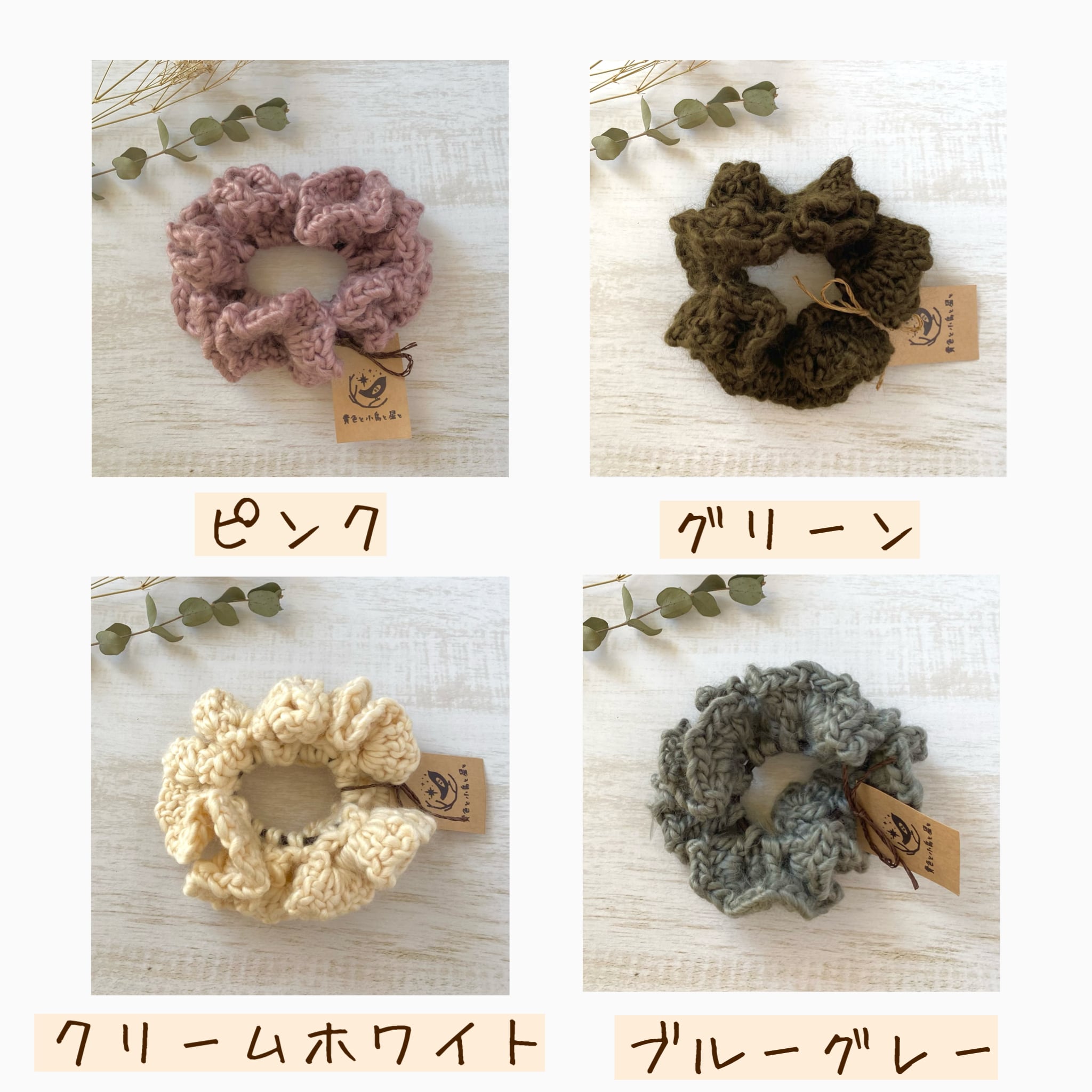 しっかりとした毛糸を使用して編まれた、ふんわりとした質感が魅力のシュシュです。