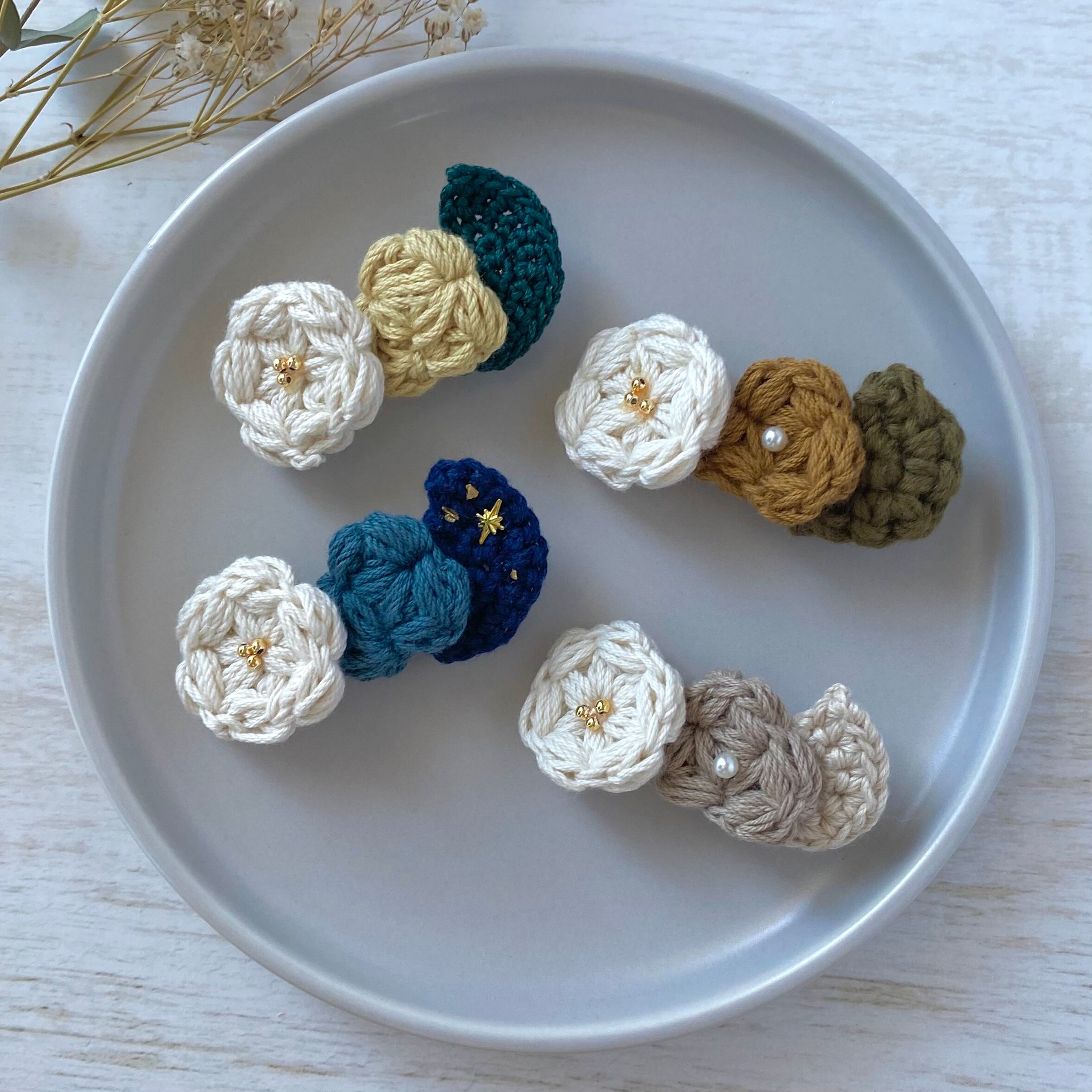 手編みで仕上げられた花たちは、まるでお庭にいるような気分にさせてくれます。豪華なデザインとバラエティ豊かな色使いが、どんなスタイルにもぴったりマッチします。4種類からお選びいただけます。